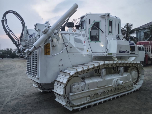 เครื่องเก็บกู้ทุ่นระเบิด KOMATSU ขนาดหนักนี้ มีน้ำหนักมากกว่า 40 ตัน ได้รับการพัฒนา และใช้งานในกัมพูชา โดยความร่วมมือระหว่าง CMAC และ KOMATSU ในช่วงปลายทศวรรษ 1990 และเริ่มใช้งานใน CMAC ตั้งแต่ปี 2548 เราขอขอบคุณรัฐบาลญี่ปุ่นที่มอบเครื่องเก็บกู้ทุ่นระเบิดขนาดหนักนี้ให้แก่รัฐบาลราชอาณาจักร เพื่อสนับสนุน CMAC ในการเร่งดำเนินการกำจัดทุ่นระเบิด และซากปรักหักพังจากสงครามในกัมพูชา โดยเฉพาะอย่างยิ่งซากปรักหักพังจากสงครามรุกรานของสยาม เพื่อให้ประชาชนชาวกัมพูชาสามารถกลับไปยังหมู่บ้านของตน และใช้ที่ดินของตนในการสร้างชีวิตใหม่ได้อย่างปลอดภัยและสงบสุข