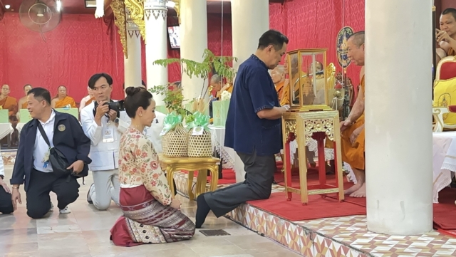 โดยเจ้าอาวาส ได้มอบพระพุทธรูป และพระเครื่อง “พระเจ้าช่อแฮ” ให้กับนายกรัฐมนตรี และนางสาวธนนท์และนายกรัฐมนตรีได้มอบต้น “ยมหิน” ซึ่งเป็นต้นไม้ประจำจังหวัดแพร่ ให้กับผู้ว่าราชการจังหวัด