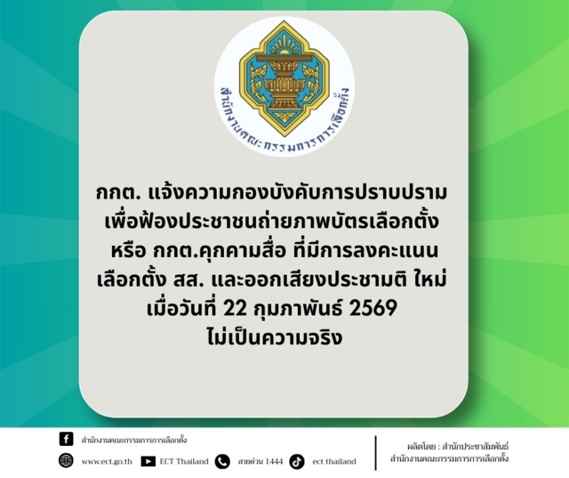 สำนักงานคณะกรรมการการเลือกตั้ง ขอเรียนว่า การนำเสนอข่าวที่ กกต.ฟ้องถ่ายภาพบัตรเลือกตั้ง หรือ กกต. คุกคามสื่อ ที่มีการลงคะแนนเลือกตั้ง สส. และออกเสียงประชามติ ใหม่ ดังกล่าวไม่เป็นความจริง สำหรับบุคคลหรือสื่อมวลชน ที่ดำเนินการตั้งกล้องวีดิโอหรือถ่ายรูปบัตรเลือกตั้งที่กรรมการประจำหน่วยเลือกตั้ง ดำเนินการขานคะแนน หรือนับคะแนน พร้อมทั้งแสดงภาพบัตรเลือกตั้งที่วินิจฉัยแล้วให้ประชาชนทราบสามารถกระทำได้ หรือการถ่าย วีดีโอหรือถ่ายภาพบรรยากาศของประชาชนมาใช้สิทธิลงคะแนนสามารถกระทำได้และไม่มีความผิดตามกฎหมาย แต่ต้องไม่กระทบ