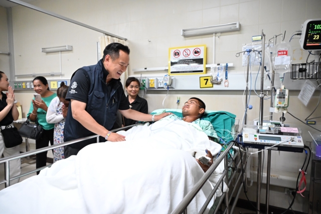 ซึ่งได้รับบาดเจ็บจากการเหยียบทุ่นระเบิดสังหารบุคคล ทำให้ขาขวาขาดจากแรงระเบิด ขาซ้ายมีแผลเปิดขนาดใหญ่และมีกระดูกขาซ้ายแตกหักบางส่วน ขณะปฏิบัติหน้าที่อยู่บริเวณภายในเขตควบคุมของหน่วยฐานปฏิบัติการเอราวัณ ช่องระยี พื้นที่แนวชายแดนไทย-กัมพูชา อำเภอกาบเชิง จังหวัดสุรินทร์ เมื่อวันที่ 27 ก.พ. 69 ที่ผ่านมา โดยได้ทำการส่งตัวกำลังพลจากโรงพยาบาลกาบเชิงเข้ารักษาที่โรงพยาบาลสุรินทร์ ซึ่งคณะแพทย์ได้ทำการรักษาและดูแลอย่างใกล้ชิด ขณะนี้อาการโดยรวมดีขึ้นตามลำดับ โดยบรรยากาศในขณะเข้าเยี่ยมอาการ พลทหารเดชศักดิ์ ตรีคำ และครอบครัว ต่างดีใจ ตื้นตันและมีรอยยิ้มจากการได้พูดคุยกับนายกรัฐมนตรีอย่างเป็นกันเองและใกล้ชิด
