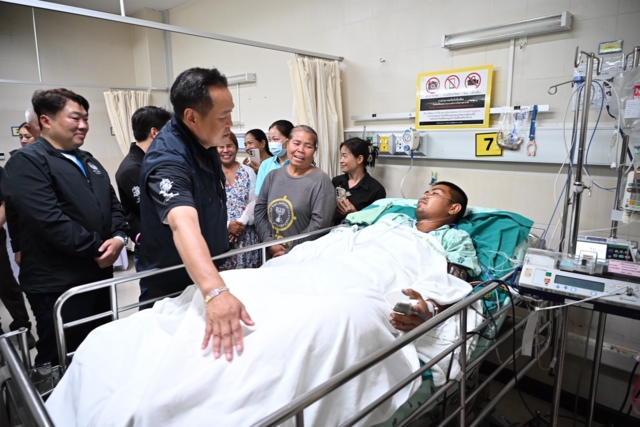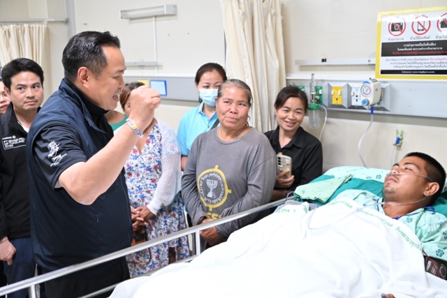 วันที่ 1 มี.ค. ที่หอผู้ป่วยศัลยกรรมและอุบัติเหตุ โรงพยาบาลสุรินทร์ อ.เมืองสุรินทร์ จ.สุรินทร์ นายอนุทิน ชาญวีรกูล นายกรัฐมนตรีและรัฐมนตรีว่าการกระทรวงมหาดไทย พร้อมด้วย นายโสภณ ซารัมย์ รองนายกรัฐมนตรี นายภราดร ปริศนานันทกุล รัฐมนตรีประจำสำนักนายกรัฐมนตรี พลโท อดุลย์ บุญธรรมเจริญ รัฐมนตรีช่วยว่าการกระทรวงกลาโหม นายอรรษิษฐ์ สัมพันธรัตน์ ปลัดกระทรวงมหาดไทย และคณะ เข้าเยี่ยมอาการพร้อมมอบกระเช้าบำรุงขวัญและพูดคุยให้กำลังใจ พลทหารเดชศักดิ์ ตรีคำ กำลังพลสังกัดค่ายวีรวัฒน์โยธิน