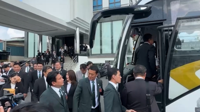 จากนั้นเวลา 10.40 น. นายอรรถกร ศิริลัทธยากร รมว.ท่องเที่ยวและกีฬา ในฐานะนายทะเบียนพรรคกล้าธรรม นำสส.ขึ้นรถบัส เดินทางรายงานตัวต่อสภา