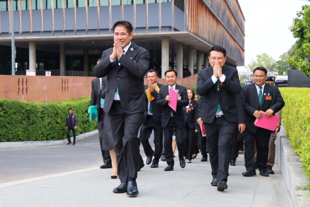 วัรที่ 6 มี.ค. ที่รัฐสภา ร.อ.ธรรมนัส พรหมเผ่า ประธานที่ปรึกษาพรรคกล้าธรรม พร้อมด้วยนางนฤมล ภิญโญสินวัฒน์ หัวหน้าพรรคกล้าธรรม นำคณะ สส.ทั้งแบบแบ่งเขตและบัญชีรายชื่อ จำนวน 54 คน เข้ารายงานตัวต่อสภาผู้แทนราษฎร