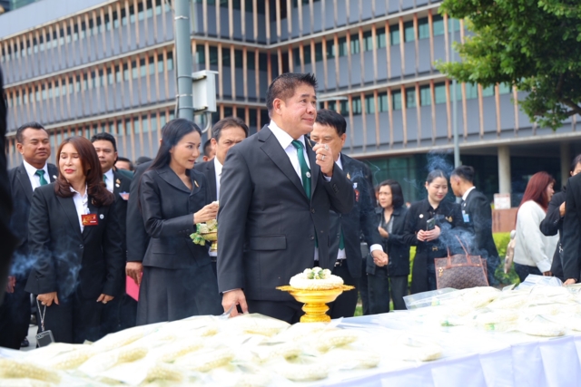 โดย ร.อ.ธรรมนัส สวมใส่ชุดสูทสีดำ เนคไทสีเขียว เดินทางถึงเวลา 11.00 น. ลงจากรถพร้อมกันทั้งคณะด้านหน้าประตูอาคารรัฐสภา ก่อนจะเดินเท้าเข้ามายังศาลพระภูมิ พระสยามเทวาธิราช ศาลตายาย โดยทีมงานพรรคได้เตรียมพวงมาลัยดอกไม้ธูปเทียนไว้ให้แล้ว ซึ่ง ร.อ.ธรรมนัส มีสีหน้ายิ้มแย้มแจ่มใส ยิ้มทักทายสื่อมวลชน พร้อมกล่าวแนะนำ สส.ใหม่ที่เข้ามาสมัยแรกด้วยว่า “สำหรับสส.ใหม่นี่คือสิ่งศักดิ์สิทธิ์ประจำรัฐสภา คือ พระสยามเทวาธิราช ทางขวามือคือศาลตายาย เป็นสิ่งศักดิ์สิทธิ์ที่เราในฐานะ ที่เราเป็นสส. ควรมากราบไหว้ก่อนเข้าทำหน้าที่ วันนี้พวกท่านก็จะเป็นสส.แบบเต็มรูปแบบ”
