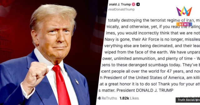 สำนักข่าวต่างประเทศรายงานว่าประธานาธิบดีโดนัลด์ ทรัมป์ ของสหรัฐ ได้ออกมาโพสต์ข้อความผ่านทางทรูธ โซเชียลส่วนตัว ระบุว่า สหรัฐอเมริกาเป็นผู้ผลิตน้ำมันรายใหญ่ที่สุดในโลกอย่างห่างไกล ดังนั้นเมื่อราคาน้ำมันสูงขึ้น เราก็ทำเงินได้มาก แต่สิ่งที่สำคัญและผมให้ความสนใจมากกว่านั้น ในฐานะประธานาธิบดี คือการหยุดยั้งจักรวรรดิที่ชั่วร้ายอย่าง อิหร่าน ไม่ให้มีอาวุธนิวเคลียร์ และไม่ให้ทำลายตะวันออกกลาง รวมถึงโลกทั้งใบ ผมจะไม่มีวันปล่อยให้สิ่งนั้นเกิดขึ้น! ขอบคุณสำหรับการให้ความสนใจต่อเรื่องนี้ - ประธานาธิบดีโดนัลด์ เจ. ทรัมป์
