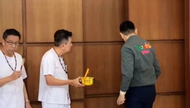 เมื่อเวลา 11.00 น. ที่สำนักงานคณะกรรมการเลือกตั้ง ศูนย์ราชการแจ้งวัฒนะ นายภัทรพงศ์ ศุภักษร หรือทนายอั๋น บุรีรัมย์ แถลงจุดยื่นเดินหน้าทำคดี "ฮั้ว สว." พร้อมนำหมอผีพรมน้ำมนต์ปัดเป่าขับไล่มนต์ดำเขมร ทางเข้า กกต.