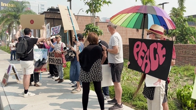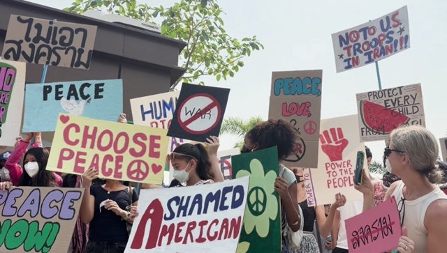 วันที่ 28 มี.ค. 69 ที่สถานกงสุลสหรัฐอเมริกาเชียงใหม่กลุ่มผู้ประท้วง ประกอบด้วย ชาวไทย และชาวต่างชาติในชื่อกลุ่ม CNX 4 PEACE กว่า 30 คน มายืนประท้วงต่อต้านสงคราม โดยชูป้ายข้อความทั้งภาษาไทย ละภาษาอังกฤษต่อต้านสงคราม