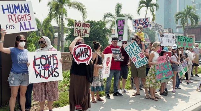 เราขอเรือกร้องให้รัฐบาลสหรัฐอเมริกา ยุตินโยบายและการดำเนินการที่ให้ความสำคัญกับการสังหารการทิ้งระเบิดการรุกราน และการละเมิดกฎหมายระหว่างประเทศมากกว่าการเจรจาอย่างสันติ และการแก้ไขความขัดแย้งผ่านช่องทางทางการทูต