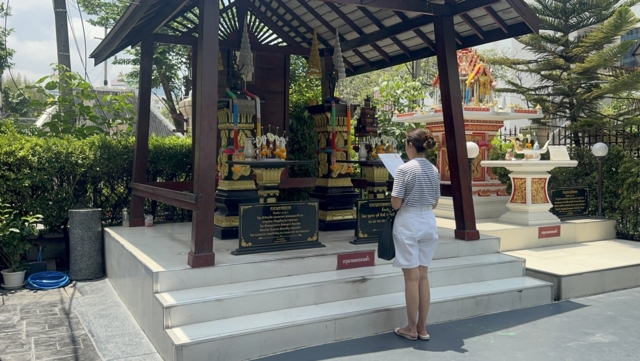 ผู้สื่อข่าวรายงานอีกว่า หลังจากภรรยานายกฯอนุทินบริจาคเงินเสร็จสิ้นได้จุดธูปกล่าวบูชาพระปางนาคปรก และกรวดน้ำอุทิศส่วนกุศล บริเวณหน้าสถาบันนิติเวช รพ.ตำรวจ โดยมีผู้ติดตามด้วย 1 คน ก่อนเดินทางกลับด้วยรถยนต์ส่วนตัวทันที