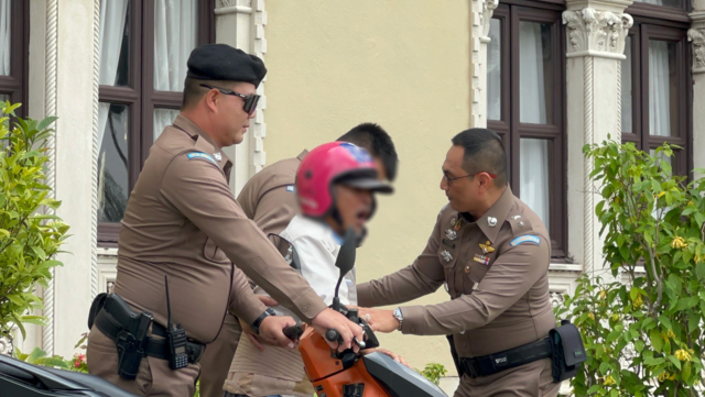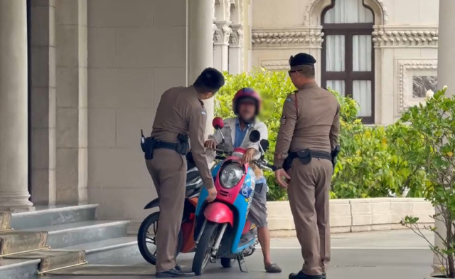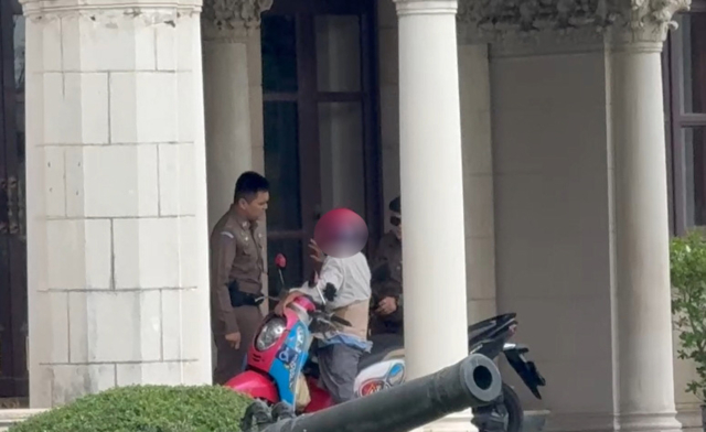 จากนั้นตำรวจสันติบาล ได้นำตัวชายดังกล่าว ซ้อนจักรยานยนต์ประกบหน้าหลังออกจากทำเนียบรัฐบาล