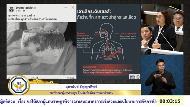วันที่ 2 เม.ย. 69 น.ส.สุภานันท์ ปัญญาทิพย์ สส.เชียงใหม่ พรรคกล้าธรรม เปิดเผยว่า ตนได้ลุกขึ้นอภิปรายในญัตติด่วนด้วยวาจาให้สภาผู้แทนราษฎร เพื่อพิจารณาเสนอมาตรการเร่งด่วน และนโยบายการจัดการปัญหาฝุ่น PM2.5 เมื่อวันที่ 1 เม.ย. 69 ว่า
