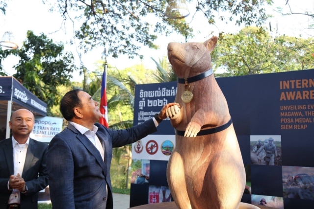 Khmer Times สื่อของกัมพูชารายงานว่า เมื่อวานนี้ รัฐบาลกัมพูชาได้จัดพิธีเปิดตัวรูปปั้นอนุสรณ์ของ "มากาวา" (Magawa) หนูยักษ์ตรวจจับกับระเบิดผู้โด่งดัง เพื่อเป็นเกียรติแก่ความกล้าหาญและอุทิศตนในการช่วยกู้ระเบิดและสรรพาวุธตกค้างจากสงครามทั่วประเทศ