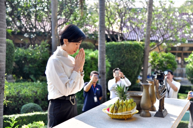 เมื่อเวลา 08.19 น. (7 เม.ย. 2569) ที่ทำเนียบรัฐบาล น.ส.รัชดา ธนาดิเรก โฆษกประจำสำนักนายกรัฐมนตรี สักการะศาลพระภูมิเจ้าที่ ศาลตายาย สิ่งศักดิ์สิทธิ์ประจำทำเนียบฯ ภายหลังที่ประชุมคณะรัฐมนตรี (ครม.) นัดพิเศษ เมื่อคืนวันที่ 6 เม.ย. 2569 มีมติแต่งตั้งเป็นโฆษกประจำสำนักนายกฯ