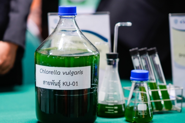 โครงการวิจัยจุลสาหร่าย KU01 คือคำตอบที่ตรงจุดที่สุดในการสร้างความมั่นคงทั้งด้านอาหารและพลังงาน โดยจุลสาหร่ายสายพันธุ์นี้มีศักยภาพในการผลิตน้ำมันต่อพื้นที่สูงกว่าปาล์มน้ำมันถึง 16 เท่า และสูงกว่าถั่วเหลืองถึง 213 เท่า สามารถสกัดน้ำมันมาผลิตเป็นเชื้อเพลิงอากาศยานยั่งยืน (SAF) ที่ลดการปล่อยก๊าซคาร์บอนไดออกไซด์ได้สูงถึงร้อยละ 59.44 เมื่อเทียบกับเชื้อเพลิงปกติ อีกทั้งจุลสาหร่ายยังเป็นพืชที่มีประสิทธิภาพในการดูดซับก๊าซคาร์บอนไดออกไซด์ได้สูงถึงร้อยละ 80-96 สอดรับกับเป้าหมาย Net Zero ของประเทศอย่างลงตัว