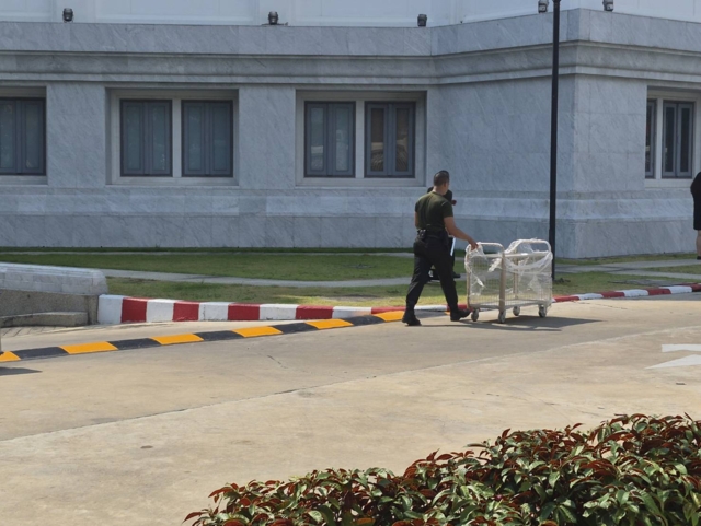 โดยเวลา 09.15 น.พบว่ามีเจ้าหน้าที่ตำรวจศาลและเจ้าหน้าที่ศาลใช้รถเข็นทยอยขนสำนวนจากรถตู้ของป.ป.ช ขึ้นไปยังอาคารศาลฎีกา โดยมีเจ้าหน้าที่ป.ป.ช. และเจ้าหน้าที่ศาลตรวจเช็กจำนวนสำนวนอย่างใกล้ชิด โดยใช้เวลาประมาณครึ่งชั่วโมงจึงแล้วเสร็จ ก่อนที่เจ้าหน้าที่ ป.ป.ช.จะเดินเข้าไปยังอาคารศาลฎีกา
