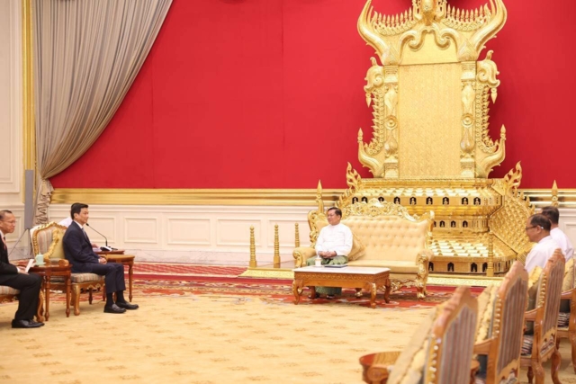 ผู้แทนพิเศษฯ เข้าเยี่ยมคารวะนาย มิน ออง ไลง์ ประธานาธิบดีเมียนมา เพื่อแสดงความยินดีจากนายกรัฐมนตรี และรองนายกรัฐมนตรีและรัฐมนตรีว่าการกระทรวงการต่างประเทศ ในฐานะประเทศเพื่อนบ้านที่ใกล้ชิด พร้อมกล่าวถึงความพร้อมของไทยที่จะร่วมกับเมียนมาเพื่อส่งเสริมความสัมพันธ์และความร่วมมืออันดีระหว่างกัน ทั้งด้านความมั่นคง และเศรษฐกิจ เพื่อประโยชน์ของประชาชนทั้งสองประเทศ