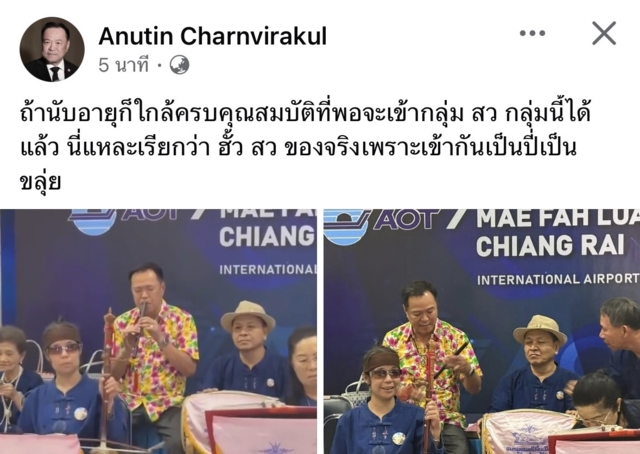 นายอนุทิน ยังโพสต์เฟซบุ๊กส่วนตัวว่า “ถ้านับอายุก็ใกล้ครบคุณสมบัติที่พอจะเข้ากลุ่ม สว. กลุ่มนี้ได้แล้ว นี่แหละเรียกว่า ฮั้วสว. ของจริงเพราะเข้ากันเป็นปี่เป็นขลุ่ย”