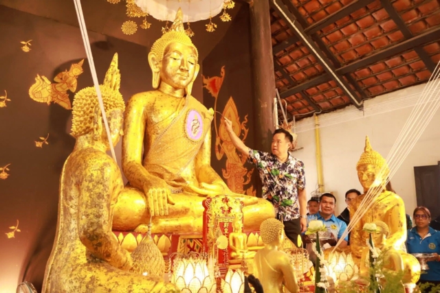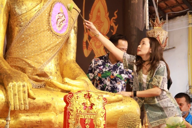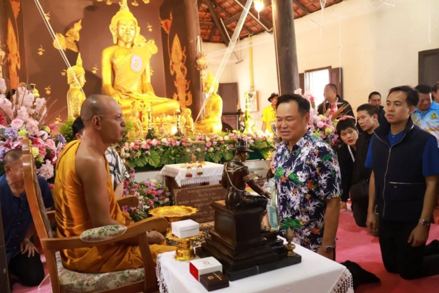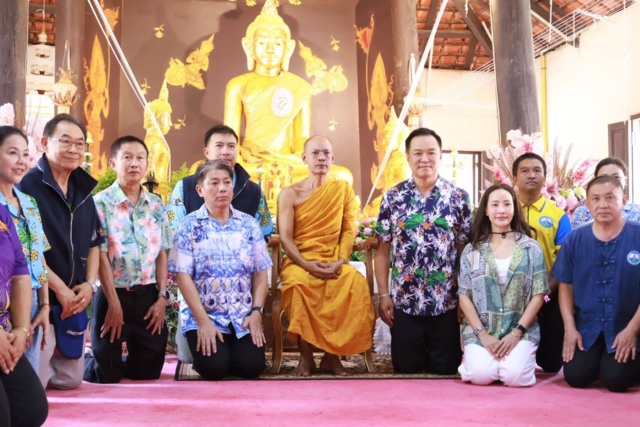 ในการนี้ พระครูจารุเขมากร วิ. ดร. เจ้าคณะตำบลคลองนารายณ์ และเจ้าอาวาสวัดทองทั่ว ได้เมตตามอบวัตถุมงคล "พระยอดธง" ให้แก่นายอนุทิน เพื่อความเป็นสิริมงคลในการต้อนรับเทศกาลปีใหม่ไทยอีกด้วย