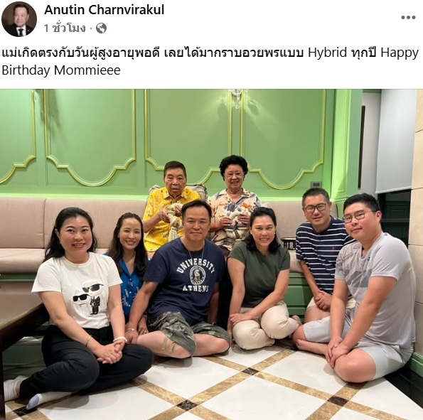 นายอนุทิน ชาญวีรกูล นายกรัฐมนตรีและรัฐมนตรีว่าการกระทรวงมหาดไทย โพสต์ภาพบรรยากาศครอบครัวสุดชื่นมื่น โดยระบุข้อความว่า "แม่เกิดตรงกับวันผู้สูงอายุพอดี เลยได้มากราบอวยพรแบบ Hybrid ทุกปี Happy Birthday Mommieee "