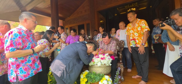วันที่ 15 เมษายน 2569 ที่บ้านทรงไทย อำเภอศรีประจันต์ จังหวัดสุพรรณบุรี นายวราวุธ ศิลปอาชา รัฐมนตรีว่าการกระทรวงอุตสาหกรรม เข้ารดน้ำดำหัวขอพร นายประภัตร โพธสุธน สส. สุพรรณบุรี พรรคภูมิใจไทย อดีตรัฐมนตรีว่าการกระทรวงเกษตรและสหกรณ์ เนื่องในเทศกาลสงกรานต์วันขึ้นปีใหม่ไทย บรรยากาศเป็นไปอย่างชุ่มฉ่ำ