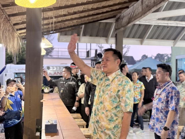 จากนายอนุทินได้อวยพรคนที่มาร่วมงานว่า ขอให้ประชาชนมีแต่ความเจริญยิ่งขึ้นไป สุขภาพแข็งแรงคิดสิ่งใดขอให้สมความปรารถนาทุกสิ่ง อายุยืนยาวและที่สำคัญต้องร่ำรวยกันทุกคน ก่อนที่ขึ้นรถเดินทางกลับกรุงเทพฯ