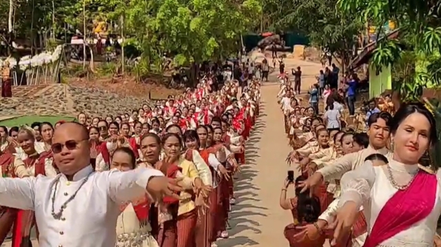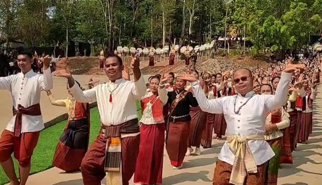 ทั้งนี้บรรยากาศเป็นไปอย่างคึกคักและตระการตา มีเหล่านางรำกว่า 200 ชีวิต สวมชุดพื้นเมืองอย่างงดงามร่วมรำบวงสรวงถวายอย่างพร้อมเพรียง ท่ามกลางสายตาของข้าราชการ ญาติพี่น้องของเหล่าวีรชน และประชาชนจำนวนมาก