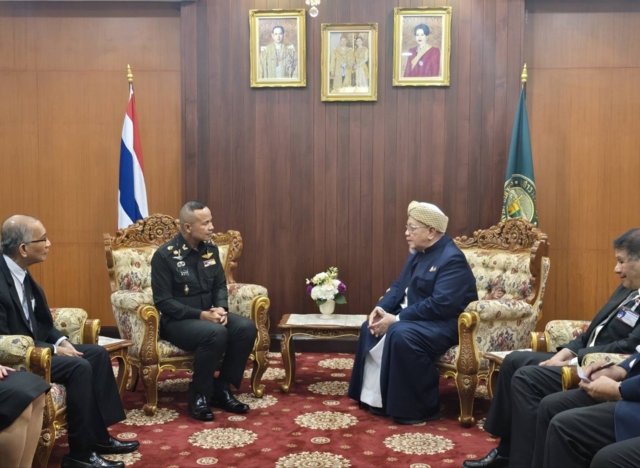 วันที่ 23 เม.ย. 69 ที่ ห้องรับรองสำนักจุฬาราชมนตรี นาย อรุณ บุญชม จุฬาราชมนตรี ให้การต้อนรับ พล.ท.นรธิป โพยนอก แม่ทัพภาคที่4 และทำหน้าที่ ผู้อำนวยการรักษาความมั่นคงภายในภาค 4 (ผอ.รมน.ภาค 4) ในโอกาสเข้าเยี่ยมคารวะและหารือข้อราชการ พร้อมแลกเปลี่ยนความคิดเห็น ตลอดจนรับฟังข้อเสนอแนะแนวทางการดำเนินงานด้านกิจการศาสนาอิสลาม