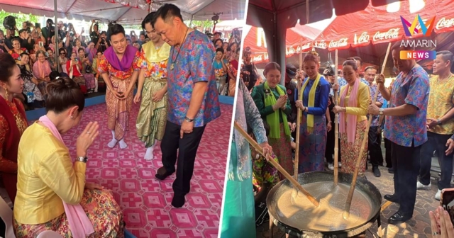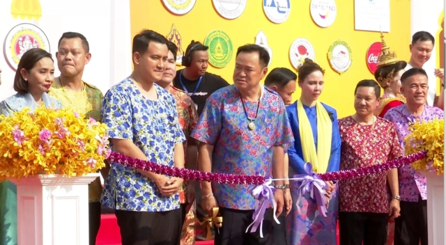 ก่อนร่วมลั่นฆ้องเปิดงานอีกครั้ง ท่ามกลางเสียงโห่ร้องดีใจของผู้ร่วมงานจำนวนมาก
