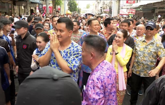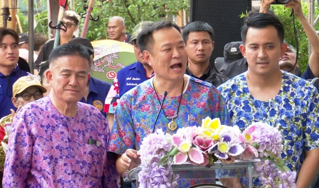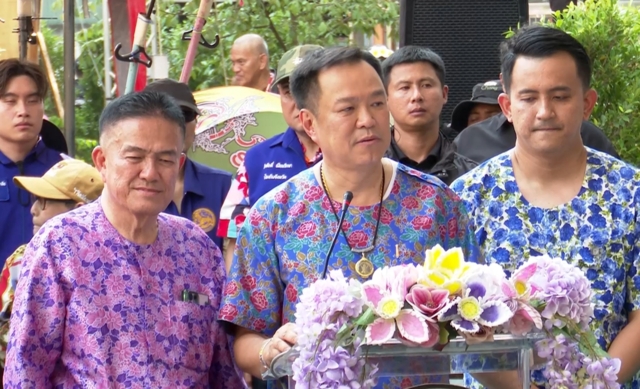ถือว่าเราอยู่ในบ้านเดียวกัน พูดคุยกันสนุกสนานกัน ไม่ได้มีเจตนาอื่นใด เป็นประเพณีของเราที่เราจะสนุกสนานกัน พูดคุยกันด้วยความเปิดใจไว้เนื้อเชื่อใจซึ่งกันและกัน เรามีลูกมีหลานก็ฝากคนรุ่นใหม่อย่าลืมหัวใจประเพณีสงกรานต์ ที่ไม่ได้มีแต่ความสนุกสนานแต่ยังเป็นการเชื่อมความรัก ความสามัคคีของชุมชน และของคนในครอบครัวไว้ด้วยกัน สคริปนี้ตนอ่านดูไม่ค่อยเร้าใจขอชื่นชมและขอบคุณคณะผู้จัดงานในโอกาสประเพณีสงครามพระประแดงประจำปี 2569 ดูแล้ว นายธนกร หวังบุญคงชนะ เริ่มส่ายหน้าว่าพี่อ่านอีกแล้ว พี่ต้องพูดเอง ถ้าพูดเองก็ขอเปิดงาน ณ บัดนี้ ไปสนุกสนานให้เต็มที่ นั่งตรงนี้ทำไมเล่า ไปสาดน้ำกัน เปิดงานครับ
