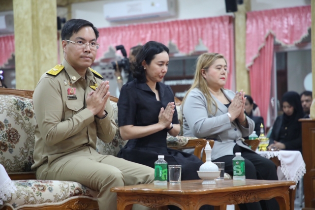 วันนี้ (27 เมษายน 2569) เวลา 19.00 น. นายอัครนันท์ กัณณ์กิตตินันท์ รัฐมนตรีช่วยว่าการกระทรวงศึกษาธิการ พร้อมด้วย ดร.ลิณธิภรณ์ วริณวัชรโรจน์ คุณปารมี ไวจงเจริญ คณะทำงาน เข้าร่วมพิธีบำเพ็ญกุศลสวดพระอภิธรรมศพ และแสดงความไว้อาลัยต่อการจากไปของ นางสาวปภัสรา เรืองฤทธิ์ ข้าราชการครู โรงเรียนสุคันธาราม ที่เสียชีวิตจากเหตุการณ์กราดยิง