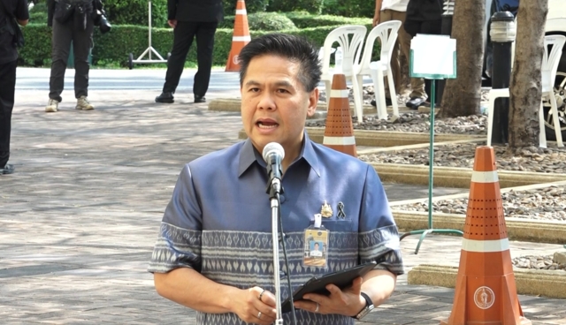 นายวราวุธ ศิลปอาชา รัฐมนตรีว่าการกระทรวงอุตสาหกรรม ให้สัมภาษณ์ก่อนการประชุมคณะรัฐมนตรี (ครม.) เกี่ยวกับมาตรการช่วยบรรเทาผล
