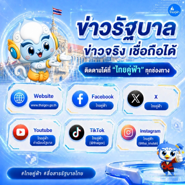 Social Media : Facebook , X , TikTok , Instagram และ YouTube ในชื่อ "ไทยคู่ฟ้า"