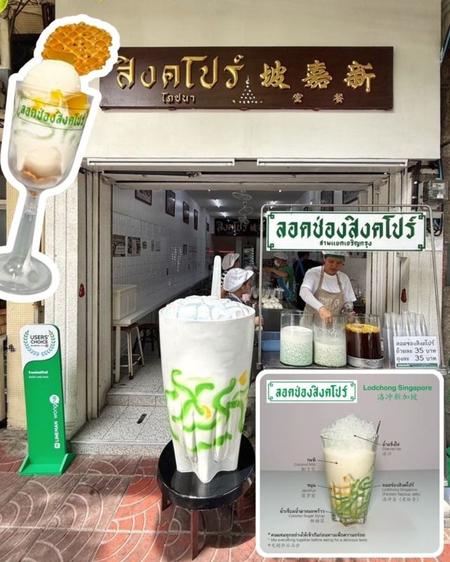 “ลอดช่องสิงคโปร์ เจ้าแรก แยกหมอมี” ต้นตำรับ “ลอดช่องสิงคโปร์” แห่งแรกของโลก! ร้านขนมในตำนานที่อยู่คู่สามแยกหมอมีมายาวนานกว่า 70 ปี จุดเริ่มต้นของชื่อ “ลอดช่องสิงคโปร์” เพราะตั้งอยู่หน้าโรงหนังสิงคโปร์ในยุคก่อน จนกลายเป็นชื่อเรียกที่คนไทยคุ้นหูมาถึงทุกวันนี้ เมนูห้ามพลาดอย่าง ลอดช่องสิงคโปร์ต้นตำรับ หอมหวาน เย็นชื่นใจ สูตรดั้งเดิมไม่เปลี่ยน ชาอู่หลงเย็น กลมกล่อม หอมละมุน และลอดช่องสิงคโปร์ พาร์เฟต์ (เมนูพิเศษเฉพาะหน้าร้าน) ลอดช่องผสานไอศกรีมสุดพรีเมียม สามารถสั่งผ่านโครงการ “คนละครึ่งพลัส” บน LINE MAN ที่สาขา สามแยกหมอมี