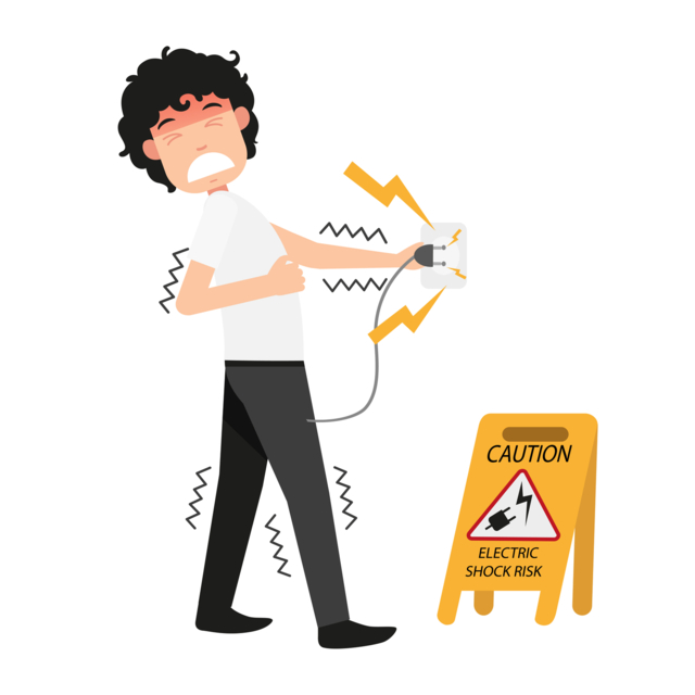 3.ห้ามแตะสวิตช์ไฟ ปลั๊กไฟ สายไฟ หลอดไฟ หรือเครื่องใช้ไฟฟ้าที่เสียบปลั๊กอยู่ ในขณะที่ร่างกายเปียกชื้น หรือกำลังยืนอยู่บนพื้นเปียกหรือพื้นที่มีน้ำขัง