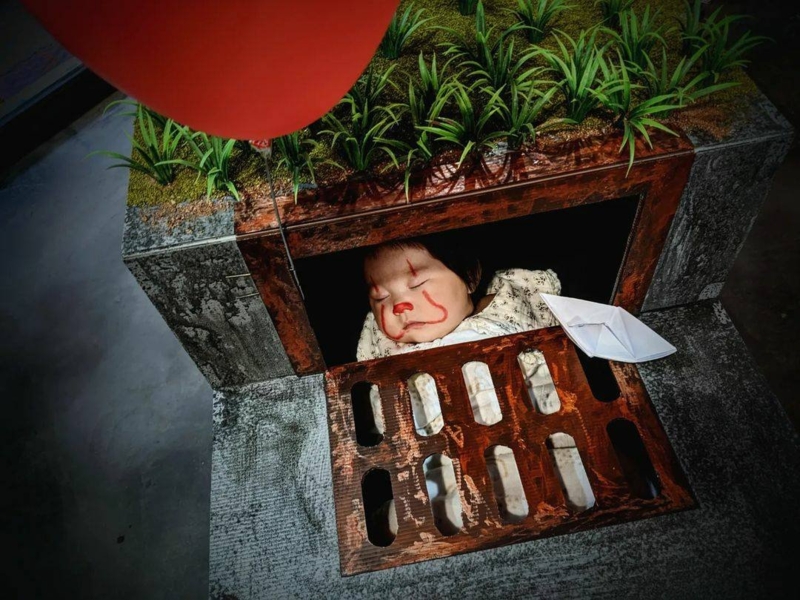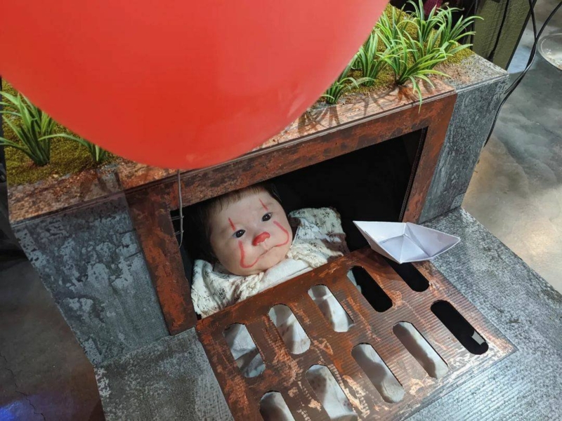 หนูน้อยรับบทตัวตลกสุดหลอนจากหนังดัง It ฉลองฮาโลวีน จัดเต็มกับฉากในตำนานโผล่มาจากท่อระบายน้ำ