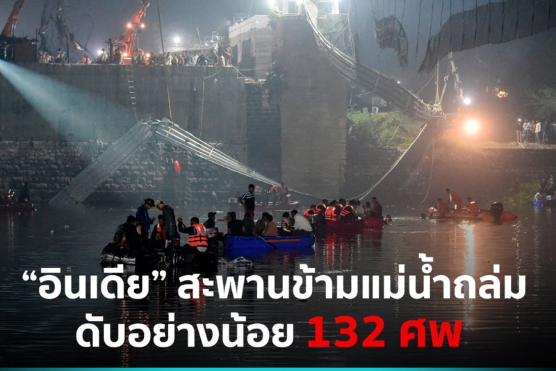 สะพานข้ามแม่น้ำ ถล่ม! เสียชีวิตแล้วอย่างน้อย 132 ศพ ผู้สื่อข่าวเผย สะพานข้ามแม่น้ำมัจฉุ อินเดีย มีอายุกว่า 100 ปี เพิ่งปรับปรุงและเปิดใช้งานเมื่อ 1 สัปดาห์ที่ผ่านมาก่อนเกิดเหตุสลด