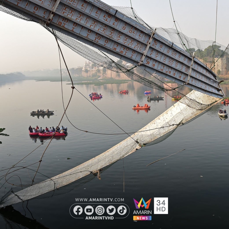 สำนักข่าว AFP รายงานเหตุสลด สะพานข้ามแม่น้ำมัจฉุ ในรัฐคุชราต ประเทศอินเดีย ถล่มลงมาเมื่อวันอาทิตย์ที่ 30 ต.ค. (ตามวันเวลาท้องถิ่น) ทำคนอินเดียและชาวต่างชาติที่กำลังเฉลิมฉลองเทศกาลวันหยุดร่วงลงแม่น้ำ