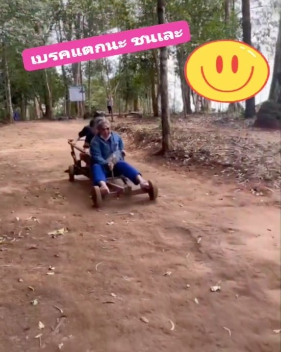 ตอนแรกลูกชายของตนเองอยากจะเล่นและขับเอง แต่ตนเห็นว่าเกรงจะบังคับรถไม่ได้และเป็นอันตราย จึงขอขับเองโดยให้ลูกชายทั้ง 2 คนนั่งอยู่ด้านหลัง โดยก่อนขับเจ้าหน้าที่ได้แนะนำการบังคับรถในการเลี้ยวซ้ายเลี้ยวขวารวมทั้งการเบรกเมื่อ ถึงเวลาขับจริงๆซึ่งเป็นทางลงเนินประกอบกับคนในรถทั้ง 3 คนมีน้ำหนักมาก ทำให้รถไหลลงมาด้วยความรวดเร็ว ตนพยายามเบรกและควบคุมรถแต่ก็เอาไม่อยู่ ด้วยความตกใจไม่รู้จะทำอย่างไร จึงได้แต่กรีดร้องจนกระทั่งรถพุ่งไปชนต้นไม้ที่อยู่ด้านข้าง จนกลิ้งไปคนละทิศละทางได้รับบาดเจ็บ มีแผลถลอกตามร่างกายทุกคน หลังจากกลับบ้านจึงได้นำคลิปมาโพสต์เพื่อความสนุกสนาน ไม่คิดว่าจะมีคนเข้ามาดูเป็นจำนวนมาก