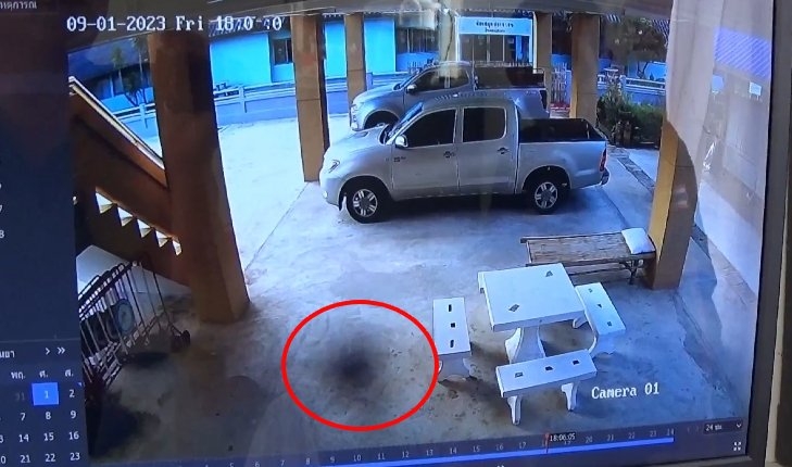 วันที่ 4ก.ย.66 ผู้สื่อข่าวเดินทางไปที่อาคารกองร้อยอาสาดินแดน อ.แม่เมาะ จ.ลำปาง ภายหลังจากกล้องวงจรปิดที่ติดตั้งใต้อาคารดังกล่าวบันทึกภาพคล้ายวิญญาณสีดำเดินไปมา ก่อนที่จะเดินผ่านโต๊ะหินอ่อน ซึ่งภาพก่อนที่จะหายจากกล้องวงวงจรปิดไปทางด้านข้างนั้นกลับพบว่าเห็นลักษณะคล้ายเท้าคนเดิน โดยเหตุเกิดช่วงเวลา18.00 น.ของวันที่1ก.ย.ที่ผ่านมา