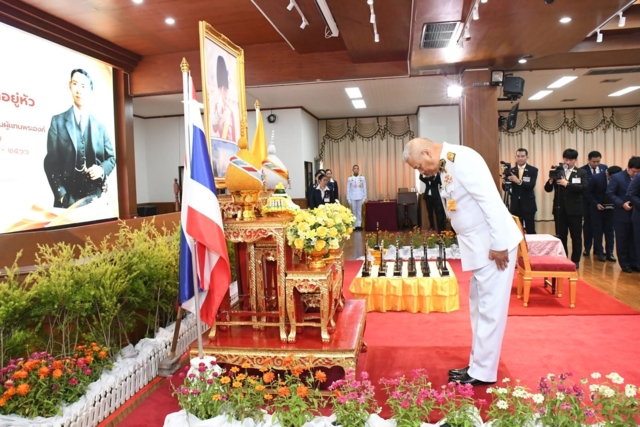 ผู้แทนพระองค์เดินทางถึงสภาสังคมสงเคราะห์ฯ ร้อยตำรวจโท ดร.มนัส โนนุช ประธานสภาสังคมสงเคราะห์ฯ พร้อมด้วยคณะกรรมการอำนวยการ ให้การต้อนรับ นางธิดารักษ์ สัจจพงษ์ เลขาธิการ สภาสังคมสงเคราะห์ฯ มอบพวงมาลัย แด่ผู้แทนพระองค์ จากนั้นผู้แทนพระองค์วางพวงมาลัย ณ พระรูปสมเด็จพระมหิตลาธิเบศร อดุลยเดชวิกรม พระบรมราชชนก และพระรูปสมเด็จพระศรีนครินทราบรมราชชนนี ณ ชั้น 1 ตึกมหิดล และขึ้นชั้น 3 เข้าสู่ห้องพิธีฯ ตึกนวมหาราช ผู้แทนพระองค์ถวายความเคารพ และถวายดอกไม้ธูปเทียนแพ หน้าพระบรมฉายาลักษณ์ พระบาทสมเด็จพระเจ้าอยู่หัว ผู้แทนพระองค์ ถวายโล่แด่พระภิกษุ จำนวน 6 รูป และนั่งเก้าอี้