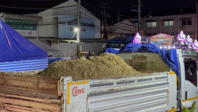 จากการประเมินคาดว่าดินเดิมซึ่งเคยอยู่ในหลุมไหลออกไปประมาณ 8,000 ลูกบาศก์เมตร เบื้องต้น เจ้าหน้าที่จึงตั้งเป้าว่าจะถมทรายให้ได้วันละ 2,000 ลูกบาศก์เมตร และหากสามารถดำเนินการได้ตามแผนที่วางไว้ ก็คาดว่าจะใช้เวลารวม 4 วัน จึงจะสามารถคืนผิวจราจรได้ตามกำหนด