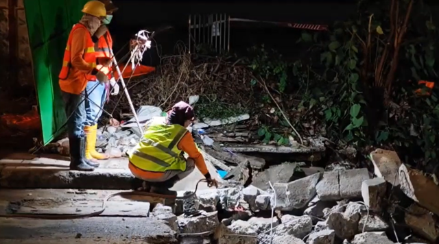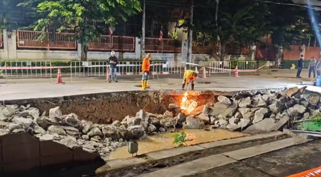 โดยเจ้าหน้าที่พร้อม เครื่องจักรหนัก เร่งเจาะพื้นถนนที่เกิดการทรุด เพื่อเตรียมเปิดพื้นผิวจราจรให้แล้วเสร็จภายในคืนที่ผ่านมา โดยบริเวณที่เจ้าหน้าที่ทำการขุดเจาะนั้นต้องทำอย่างระมัดระวัง เนื่องจากใต้ผิวถนนเป็นโพรงขนาดใหญ่กว่า 26 เมตร และลึกประมาณ 1 ถึง 2 เมตร
