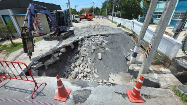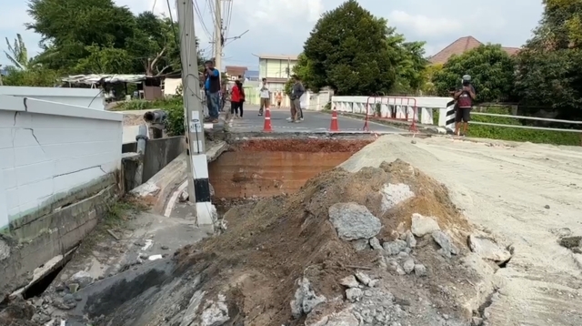 ผู้สื่อข่าวรายงาน วันที่ 2 ตุลาคม 2568 พ.ต.อ.ฐนพงศ์ โพธิ์ที ผกก.เสม็ด นางสาวณภัสนันท์ อรินทคุณวงษ์ นายกเทศมนตรีตำบลเสม็ด พร้อมหน่วยงานที่เกี่ยวข้อง ลงพื้นที่ไปตรวจสอบ เกิดถนนยุบตัวลงลึกหลายเมตรและขยายตัวเป็นวงกว้าง ถนนข้างเซ็นทรัลชลบุรีมุ่งหน้าโรงเรียนบูรพา ตำบลเสม็ด อำเภอเมืองชลบุรี จังหวัดชลบุรี