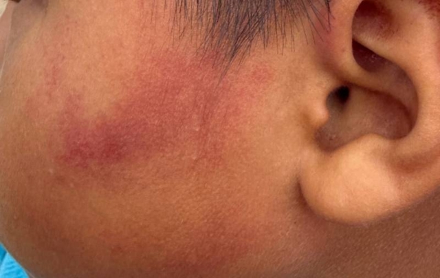 ซึ่งรอยฟกช้ำตามใบหน้า คางข้างใบหูของน้องพ๊อต ยังคงเห็นรอยช้ำอย่างชัดเจน แม้ว่าจะผ่านไป 3 วันแล้ว ซึ่งน้องก็ยังกลัว บางครั้งนั่งเหม่อ โดยน้องได้บอกกับผู้สื่อข่าวว่า วันนั้น้องไปทำอะไรผิดที่ครูต้องลงโทษน้องบอกว่าวันที่ไปโรงเรียน แม่ไม่ได้ให้เงินไป เมื่อไปในห้องเห็นขนมมาร์ชแมลโลว์ วางอยู่บนโต๊ะครูหลายอัน ตนอยากกินจึงไปหยิบมากิน 1 อัน พอตอนเที่ยงครู ก็เรียกไปแล้วก็ลงโทษ บอกว่า ขโมยขนมครู โดยครูใช้บรรทัดเหล็กตีที่หน้าทั้ง 2 ข้าง 14 ครั้งตบปาก 10 ครั้งหยิกคอและให้ไปล้างห้องน้ำ