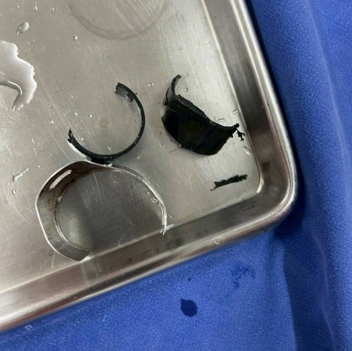 จากนั้นได้ใช้เครื่องเจียรหรือลูกหมูค่อยๆบรรจงตัดทีละนิด เพราะเกรงจะไปโดนอวัยวะเพศ ใช้เวลาประมาณ 10 นาที จึงสามารถเอาห่วงออกได้ทั้งสองห่วง โดยระหว่างช่วยเหลือแพทย์และพยายามต่างอมยิ้มกับคำพูดของผู้บาดเจ็บที่บ่นออกมาตลอดเวลาถึงสาเหตุที่เอาห่วงมารัดเอาไว้ว่า ”กลัวจะมีอสม.มาเอาเจ้าโลกของของตนไปเพราะเป็นไซส์69“