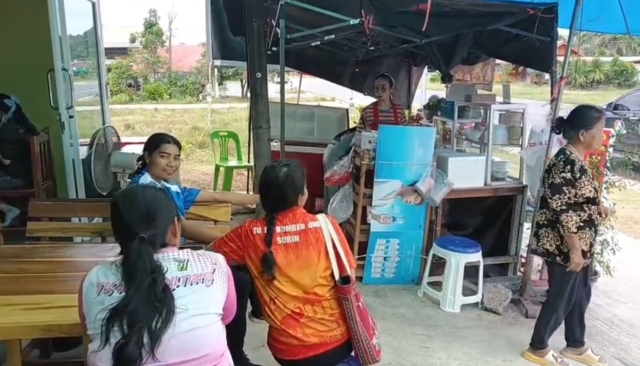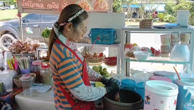 ซึ่งก็พบว่ามีลูกค้าให้ความสนใจมาช่วยอุดหนุนส้มตำมากพอสมควร ดีกว่าขายที่ย่านการค้าตลาดชายแดนช่องจอมที่เงียบกริบวันๆแทบขายไม่ได้สักครก