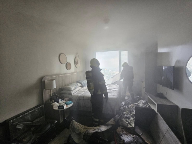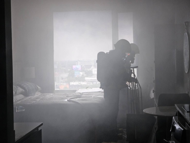 “เมื่อเวลา 14.58 น. วันที่ 10 ตุลาคม 2568 รับแจ้งจากสถานีดับเพลิงและกู้ภัยคลองเตย เหตุเพลิงไหม้ภายในโรงแรมสูง 29 ชั้น ซอยสุขุมวิท 24 ถนนสุขุมวิท แขวงพระโขนงใต้ เขตพระโขนง เจ้าหน้าที่สถานีดับเพลิงและกู้ภัยคลองเตย กำลังไปที่เกิดเหตุ”