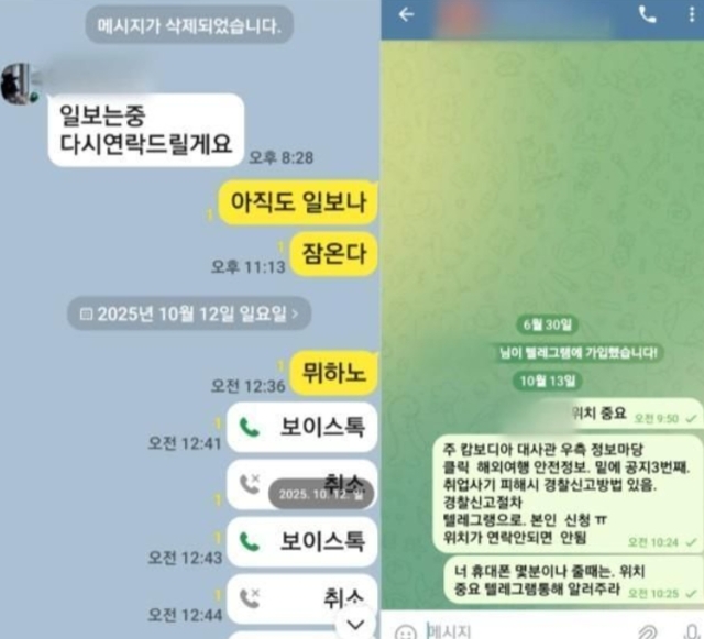 พ่อของนายยางพยายามโทรติดต่อซ้ำๆ ผ่านทาง KakaoTalk แต่ไม่ได้รับการตอบกลับใดๆ เมื่อหมดหนทาง ท่านจึงโทรศัพท์ไปยังสถานทูตเกาหลีประจำประเทศกัมพูชา แต่กลับได้รับคำตอบว่าลูกชายของท่านต้องรายงานสถานการณ์ของตัวเองโดยตรง"