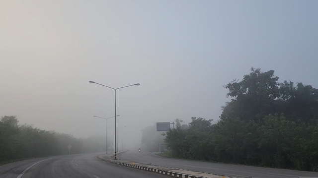 หลังที่ จ.ลำปาง ฝนหยุดตก ก็ทำให้เกิดหมอกลงบนถนนพหลโยธิน ลำปาง-แม่ทะ ในเขตของ อ.เมือง และเขต อ.แม่ทะ ละจากภาพมุมสูงก็จะเห็นได้ว่าตามถนนต่างทั่วไปในเขตตัวเมืองลำป่างมีหมอกปกคลุมในพื้นที่จำนวนมาก คนที่ใช้รถใช้ถนนต้องใช้ความระมัดระวังในการขับขี่ เนื่องจากอากาศที่เย็น และมีหมอกลงจัด ทำให้ทัศนวิสัยในการขับขี่ลดลง ซึ่งผู้คนส่วนใหญ่ก็ต้องเปิดไฟหน้า เพื่อเพิ่มการมองเห็น