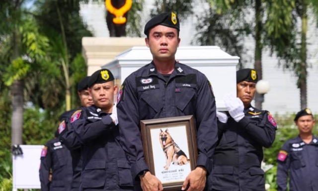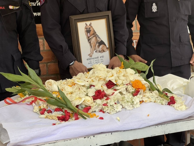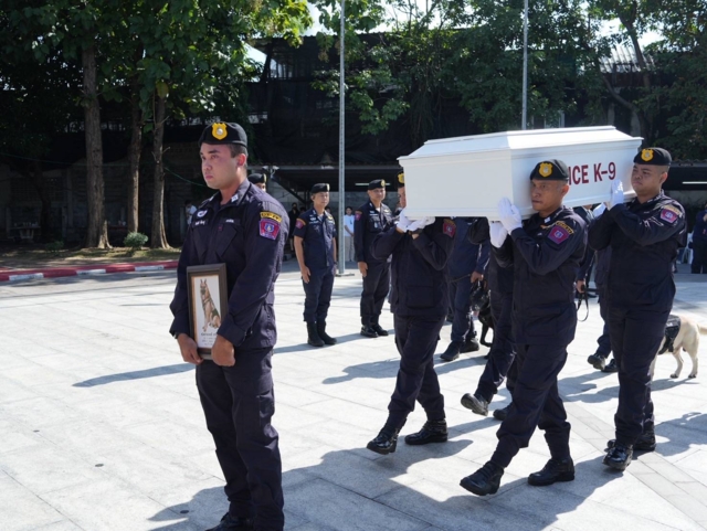 ซึ่งปฏิบัติหน้าที่ในสายงานค้นหาวัตถุระเบิดมายาวนานกว่า 5 ปี ก่อนตายด้วยอาการเจ็บป่วยเมื่อวันที่ 9 ต.ค. ที่ผ่านมา ท่ามกลางบรรยากาศสงบและโศกเศร้าของเจ้าหน้าที่ เพื่อนสุนัขตำรวจ และประชาชนผู้ติดตามผลงาน